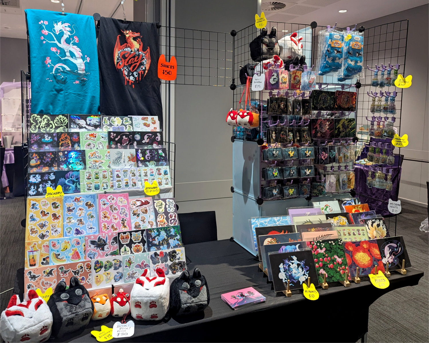 I make a LOT of small prints and stickers! I like to have lots of fun and affordable options on my table so that there’s a little something for everyone who comes by.